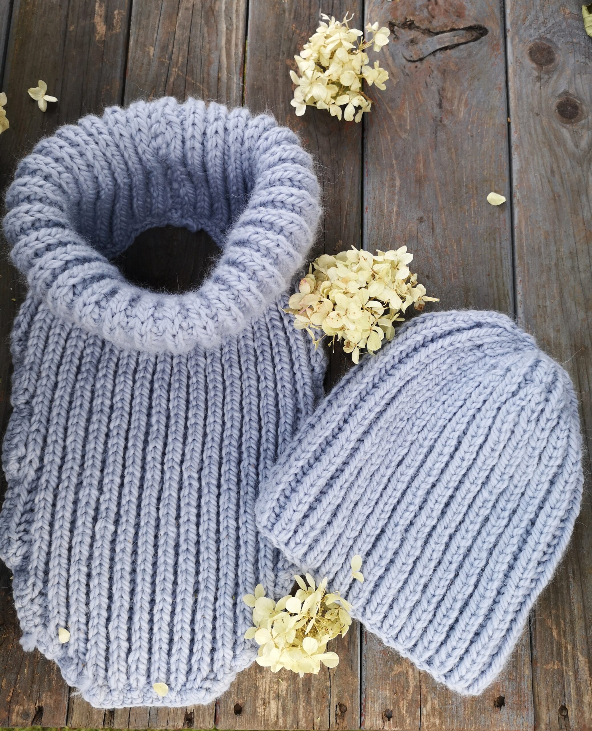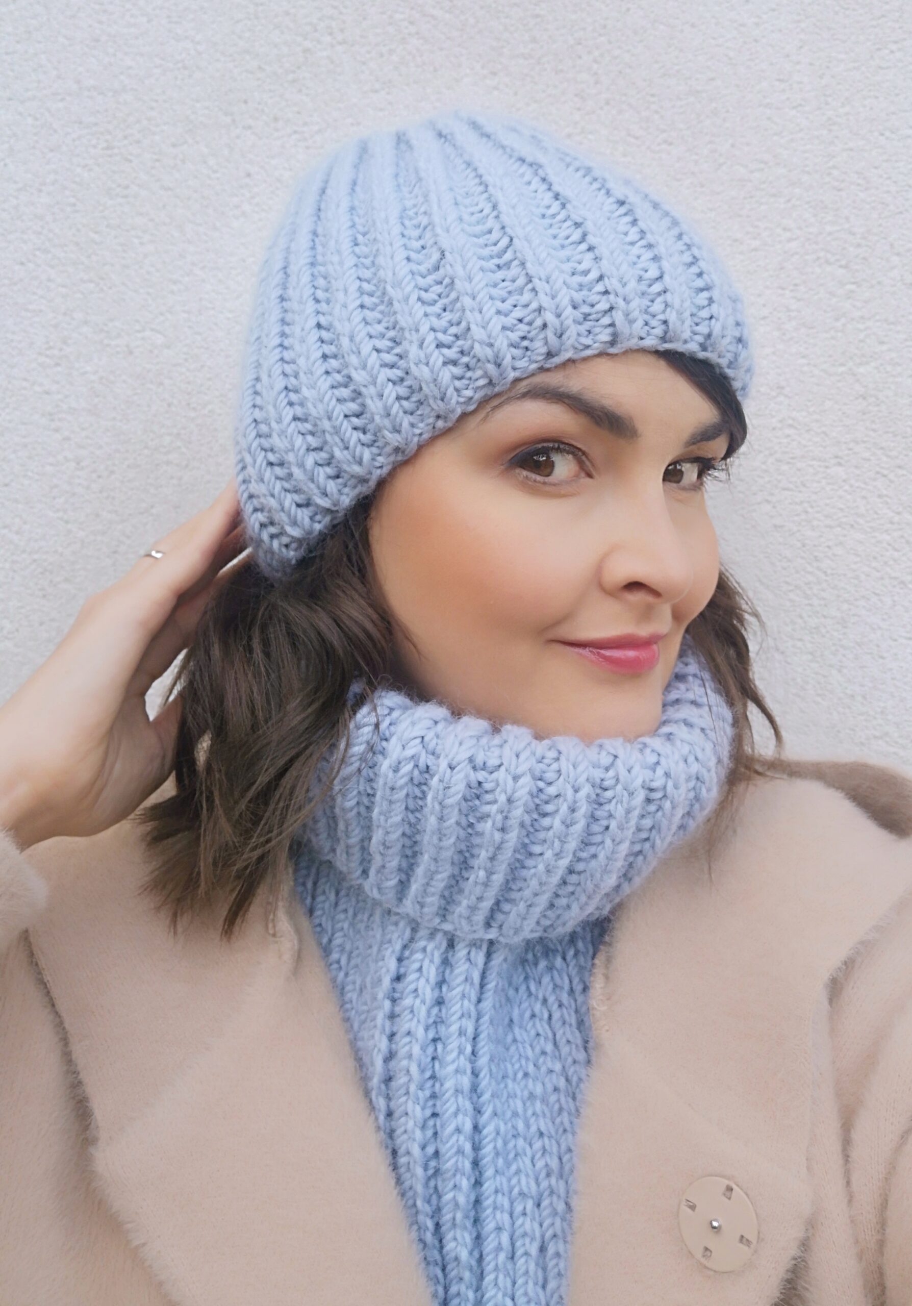 Czapka Mia w kolorze zgaszonego błękitu.