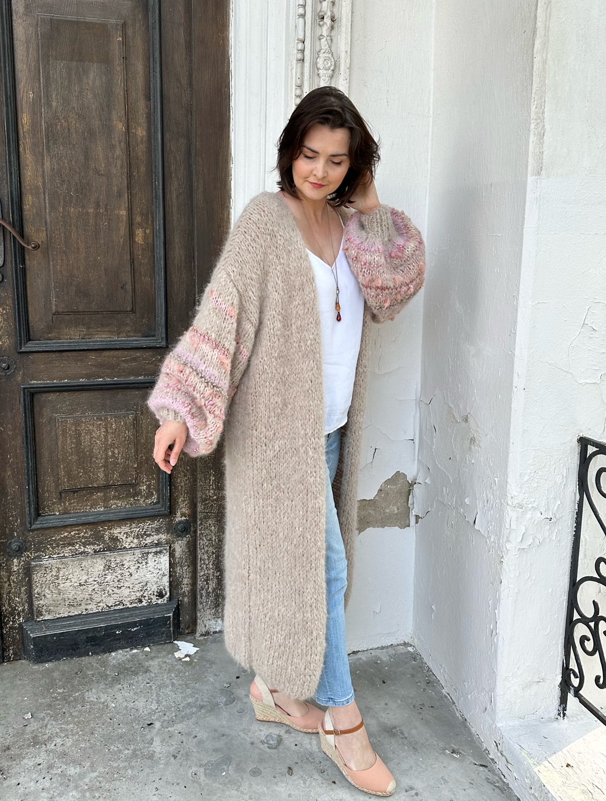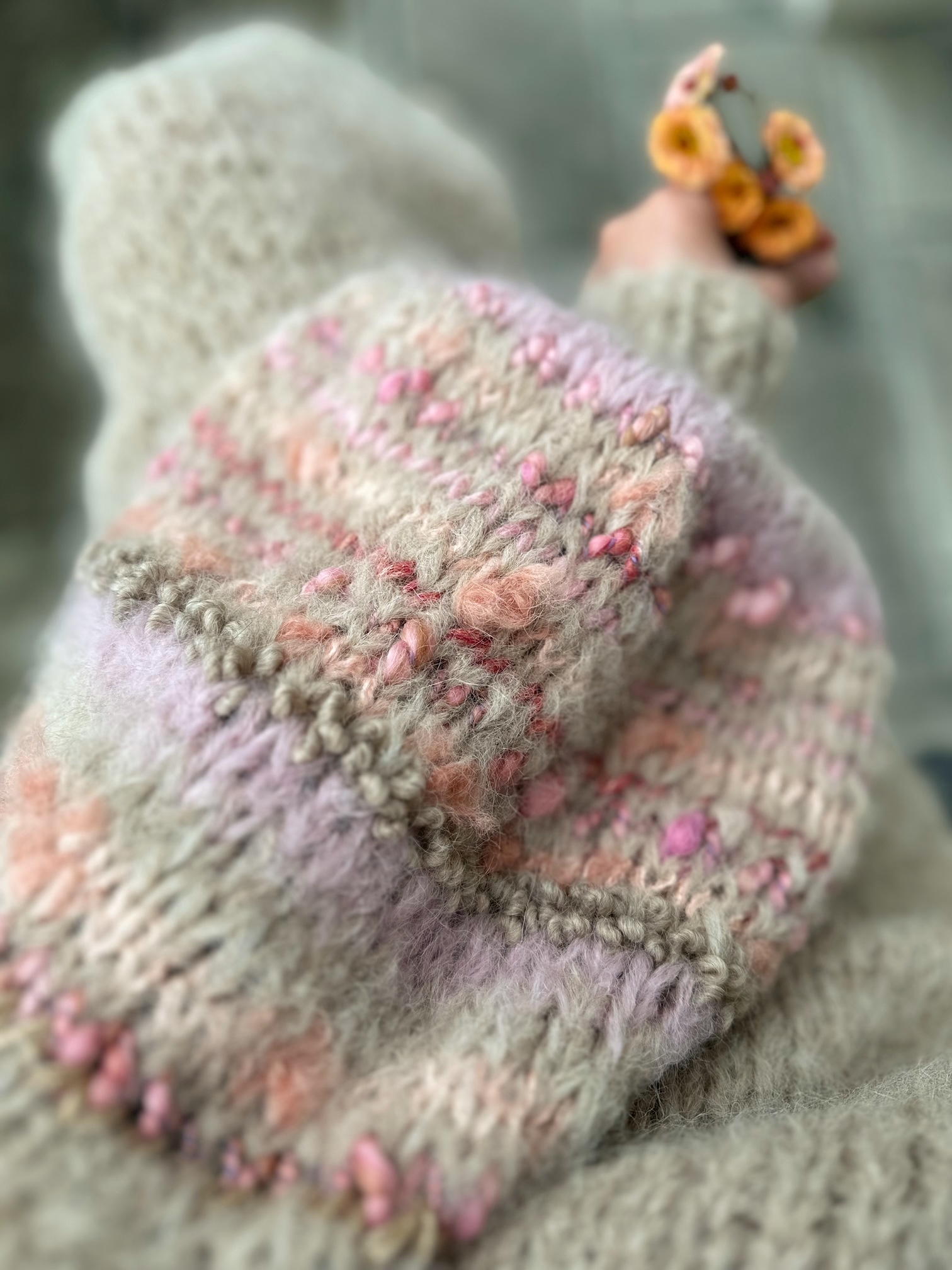 Uwaga : Pojedynczy beżowy pasek boucle na rękawie może być wymieniony ma inną włóczkę (bardzo podobną) boucle  w tym samym kolorze.