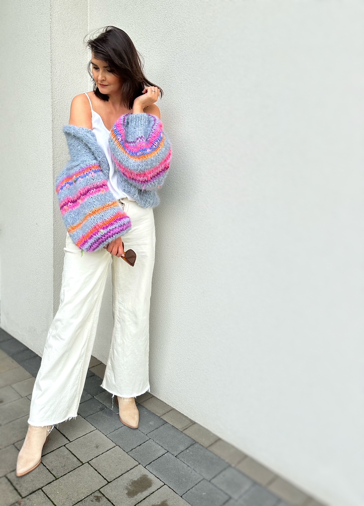 Kardigan lubi wietrzenie. Prać w pralni chemicznej na suchym programie dla delikatnej wełny