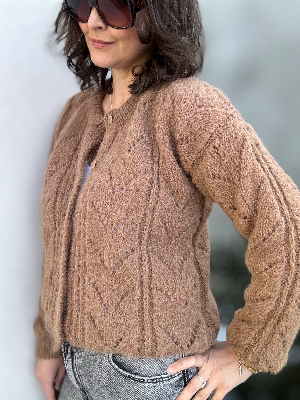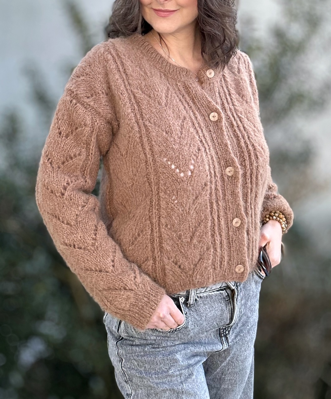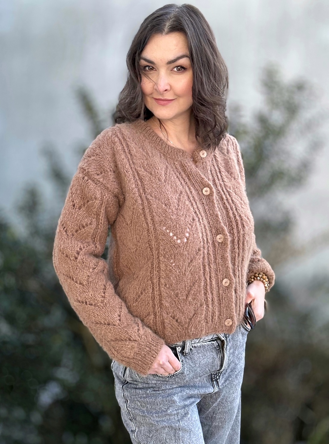 Kardigan Melody of LOVE w modnym kolorze brązu to całoroczna propozycja dla dziewczyn szukających komfortu, stylu, naturalnych włókien. Spleciony ręcznie na drutach , z ażurowymi detalami z przodu sweterka i na rękawach. Zapinany na guziczki. Ma naturalny skład: 71% Alpaka, 25% Wełna, 4% Poliamid