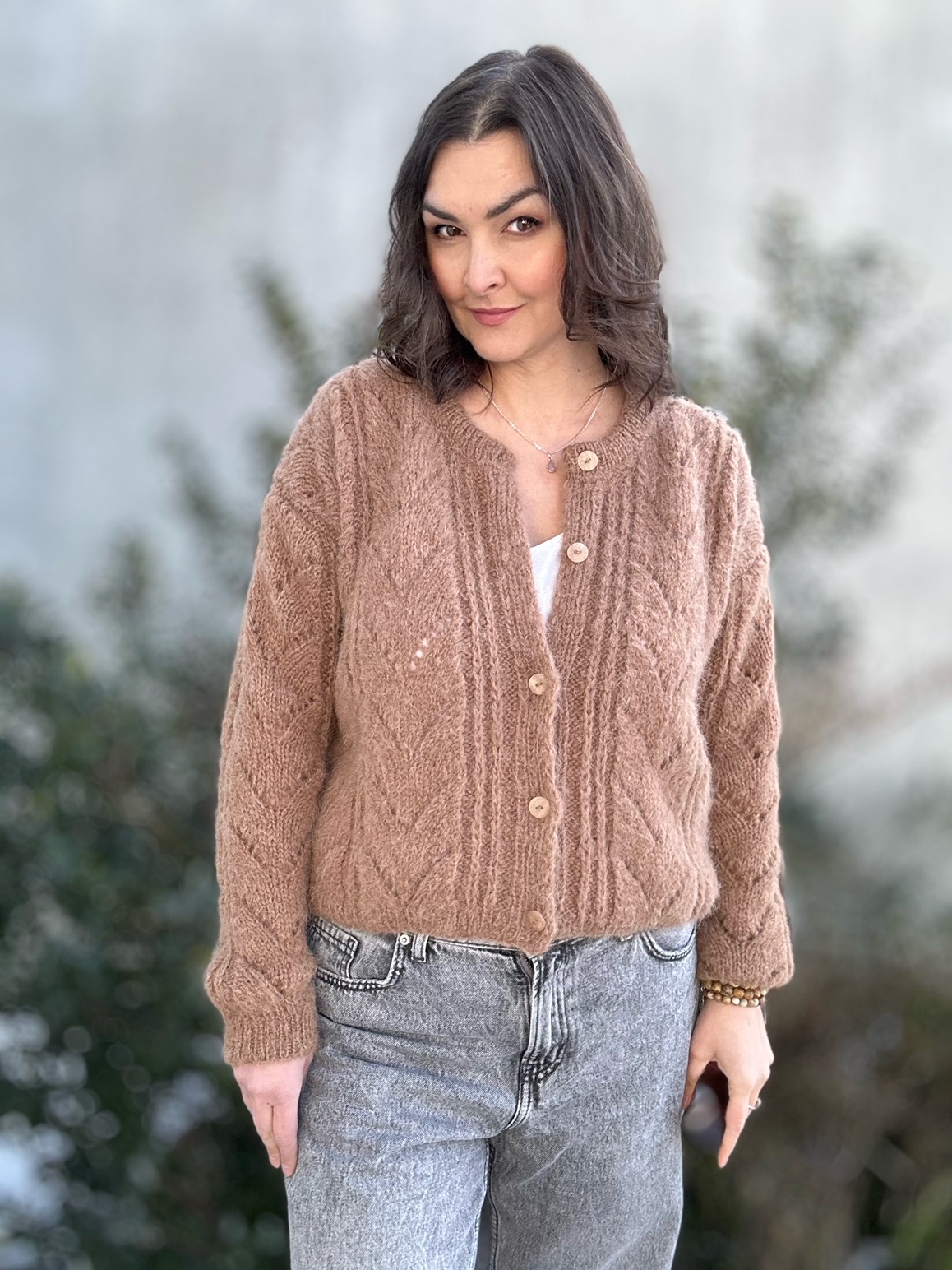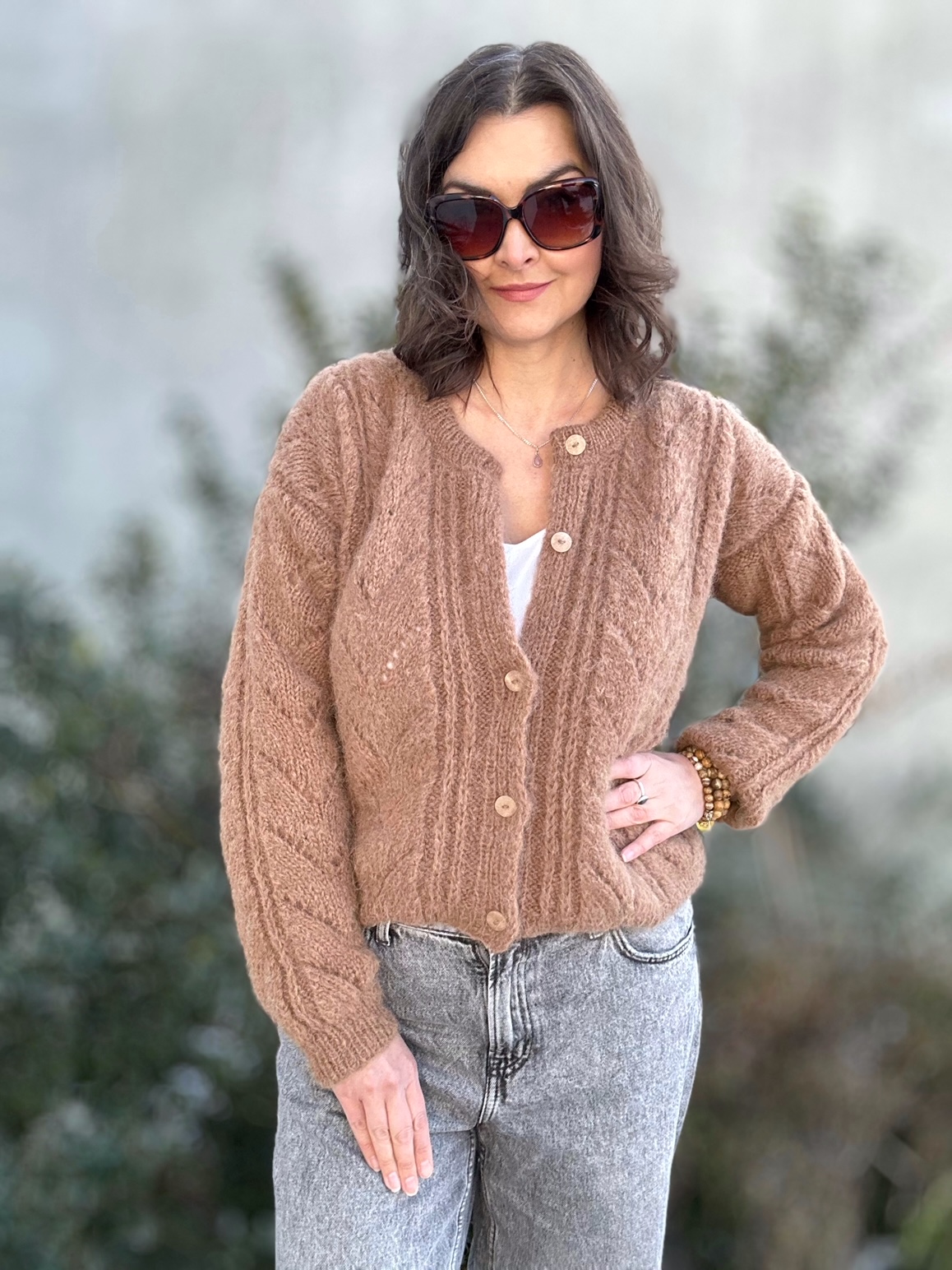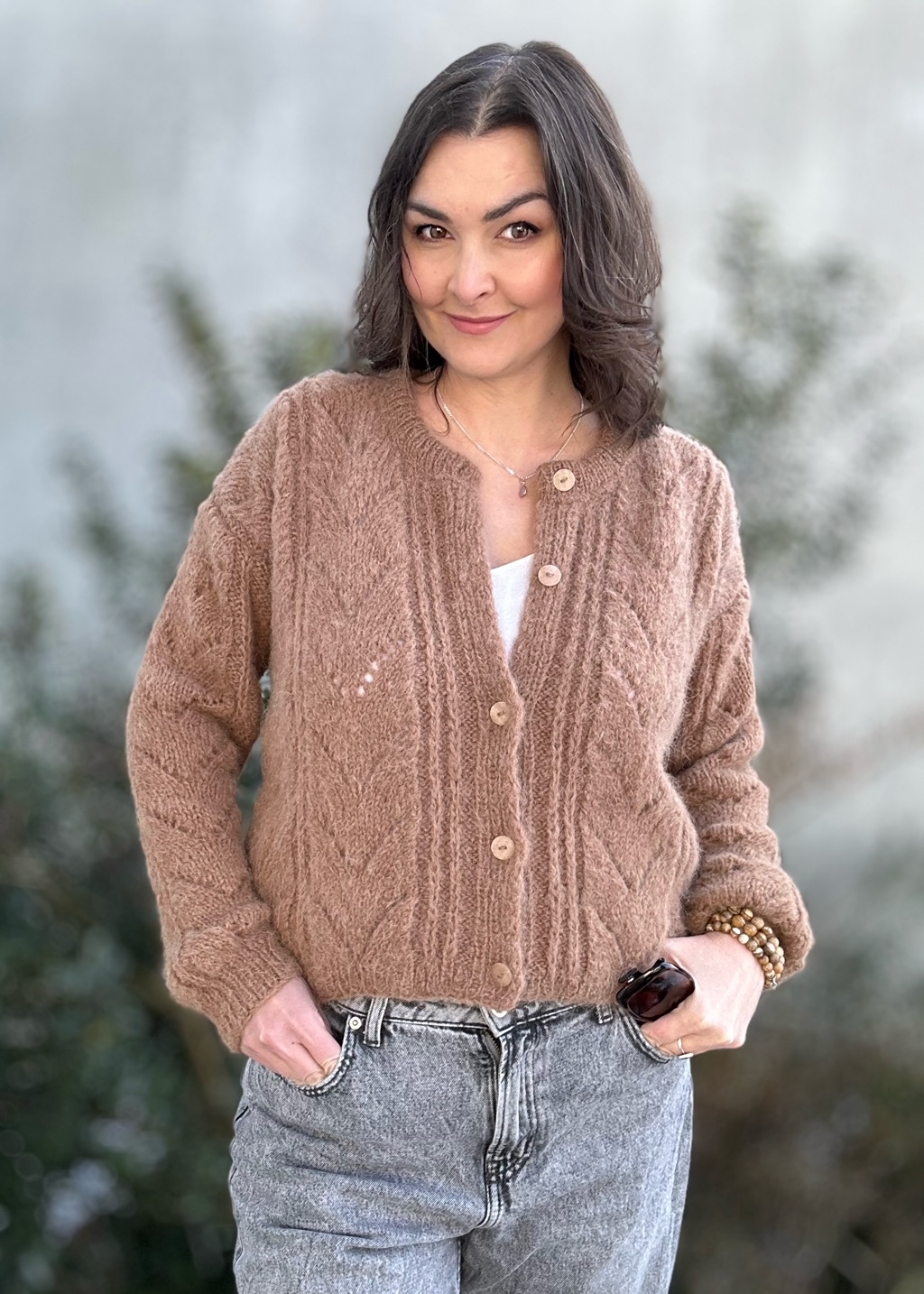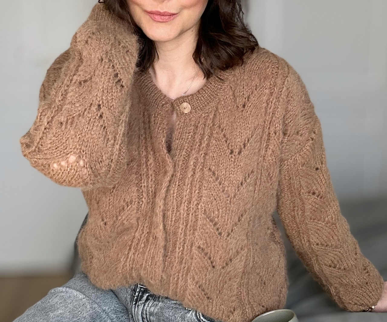 Kardigan Melody of LOVE w modnym kolorze brązu to całoroczna propozycja dla dziewczyn szukających komfortu, stylu, naturalnych włókien. Spleciony ręcznie na drutach , z ażurowymi detalami z przodu sweterka i na rękawach. Zapinany na guziczki. Ma naturalny skład: 71% Alpaka, 25% Wełna, 4% Poliamid