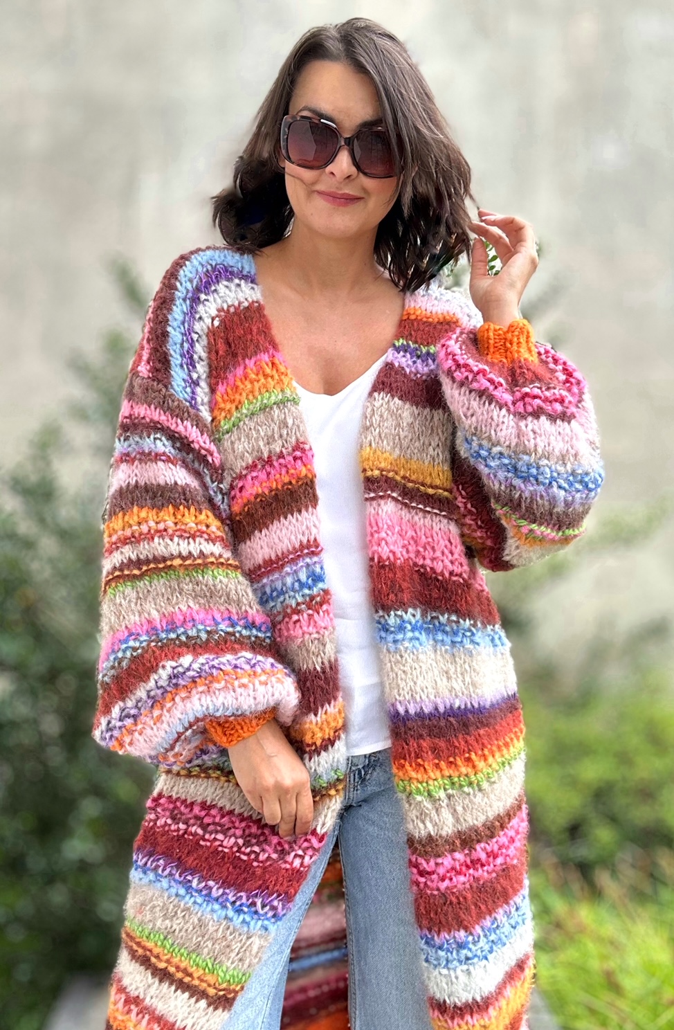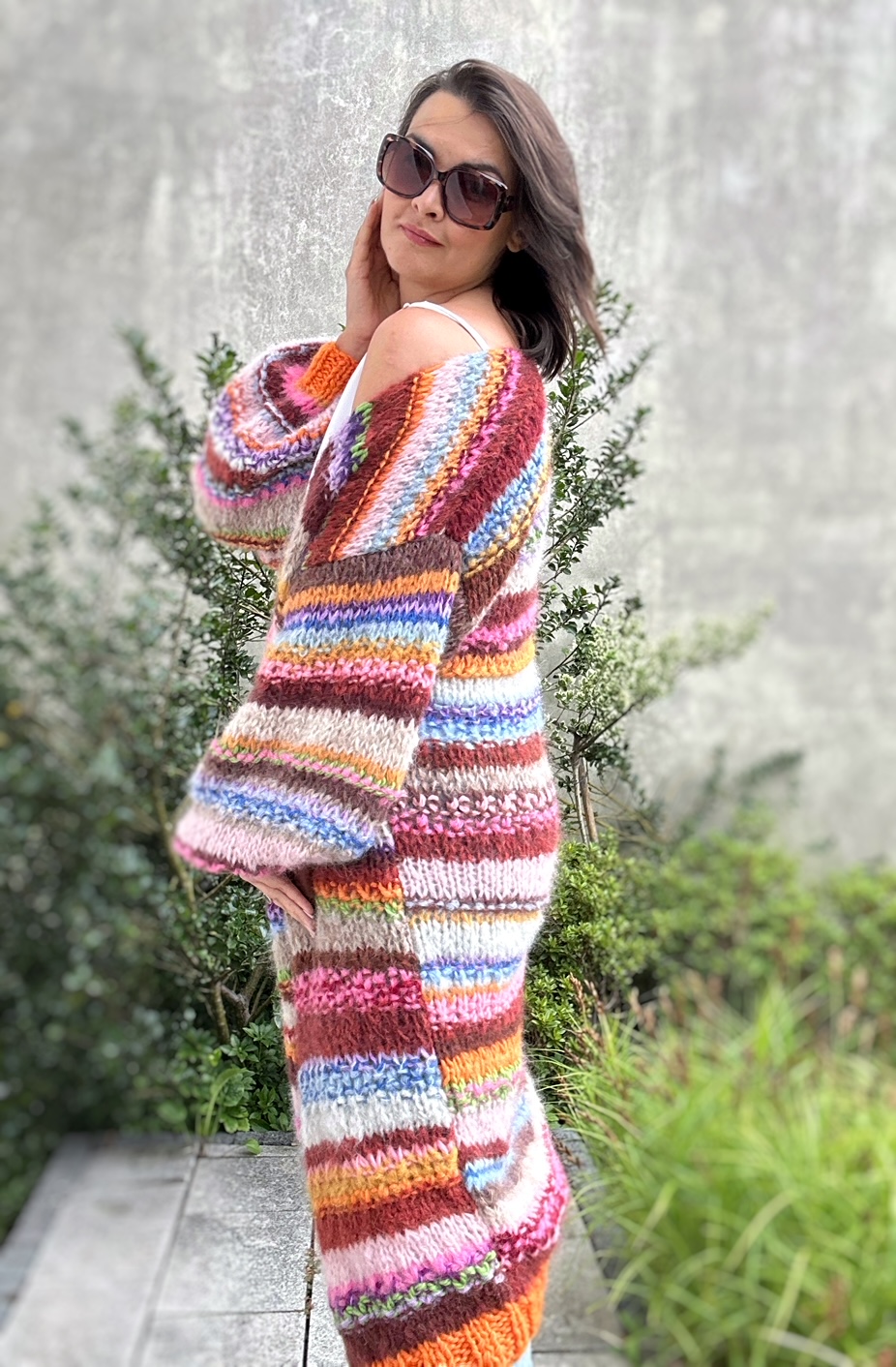 SHE is nature to kolejny kardigan z kolekcji SHE. Ta kolekcja to naturalne włóczki (alpaka, merino, jedwab , moher z niewielką domieszką akrylu),piękne kolory i ich niebanalne połączenia, szerokie rękawy, strukturalny splot. Dla Ciebie, byś czuła się kobieco i komfortowo, byś przyciągała spojrzenia.
